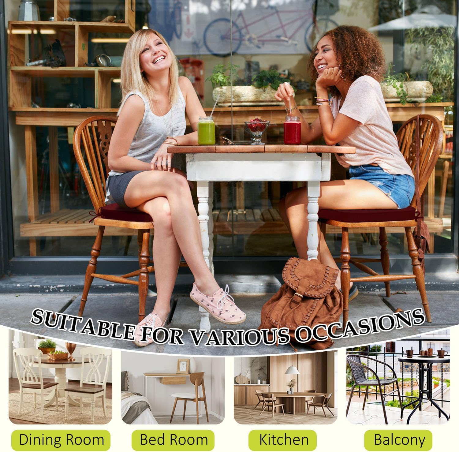 Chair Cushions for Dining Chairs, Indoor Chair Cushions with Ties,Waterproof Chair Pads Set of 4, Burgundy, 17x16x2.5 Inch