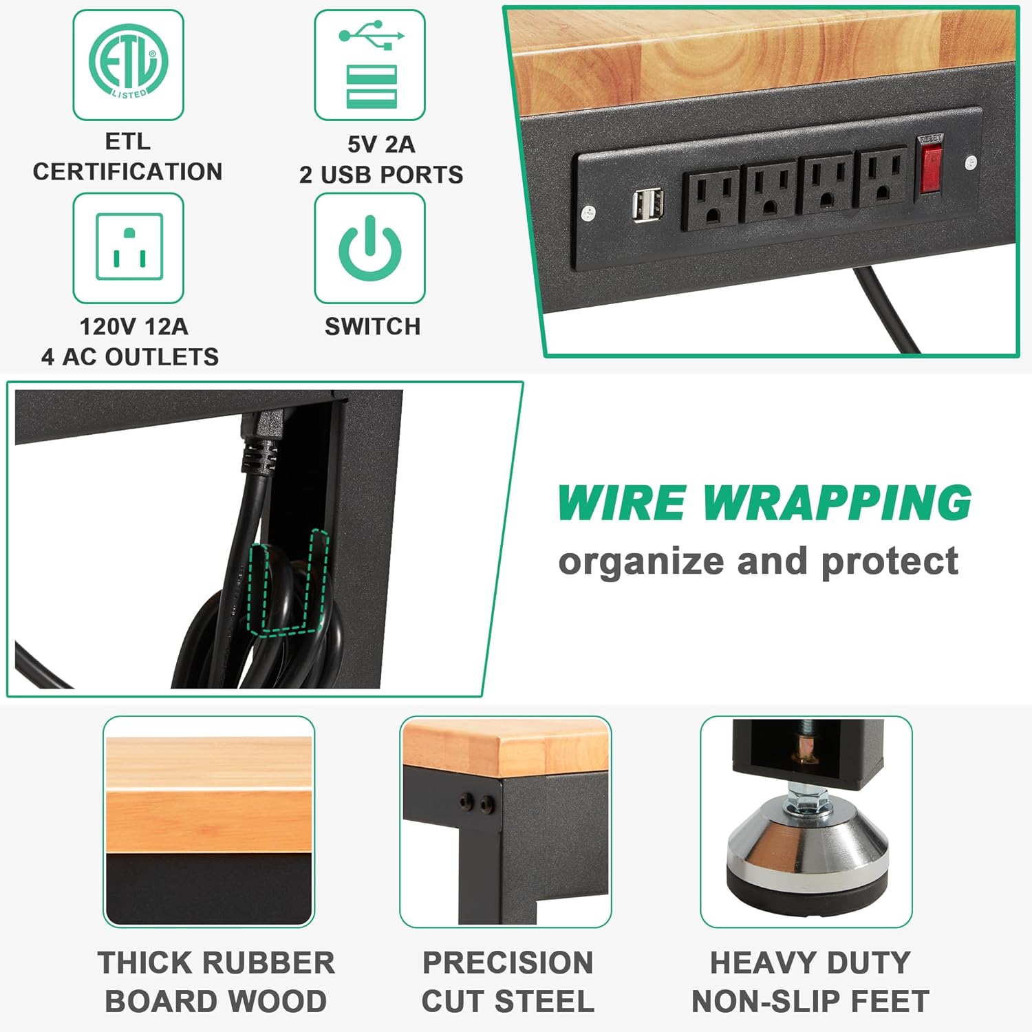- Solid Wood & Steel Frame: Solid rubber wood for tabletop supporting longer service time; Precision cut steel holds a high load bearing capacity max 2000 lbs, ideal for projects gardening and car repair, such as hitting, dyeing, drilling and cutting