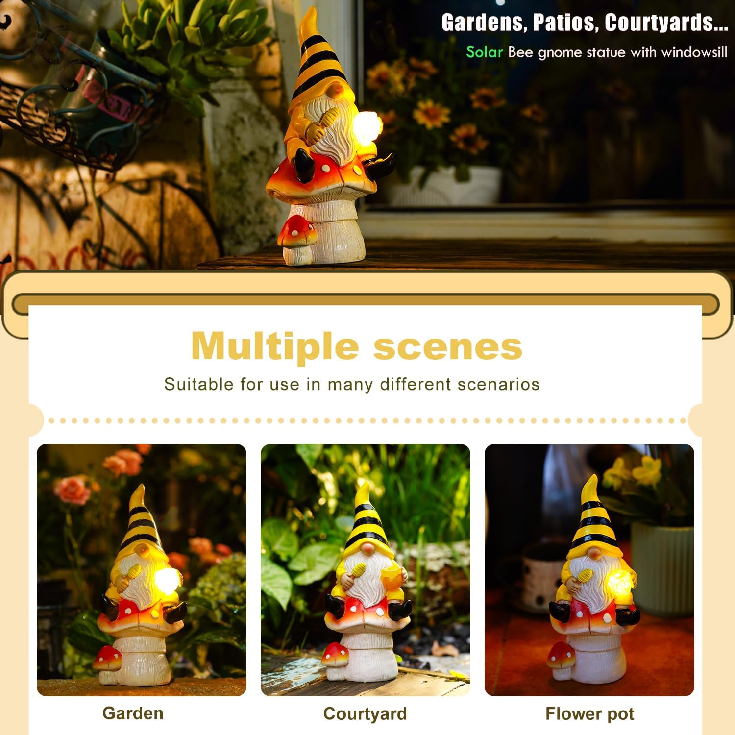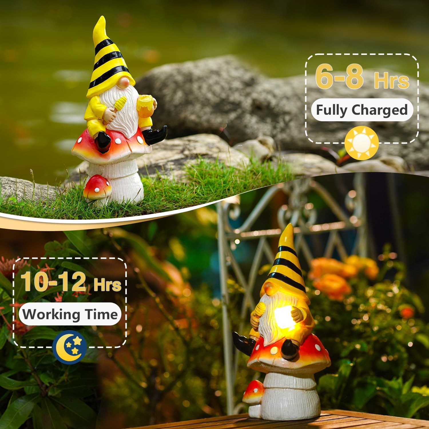 Solar Gnome on Mushroom Decor for Yard Decorations - 10 Inch Gnome Statue Decor for Outdoor,Perfect Garden Gifts for Women,Mom