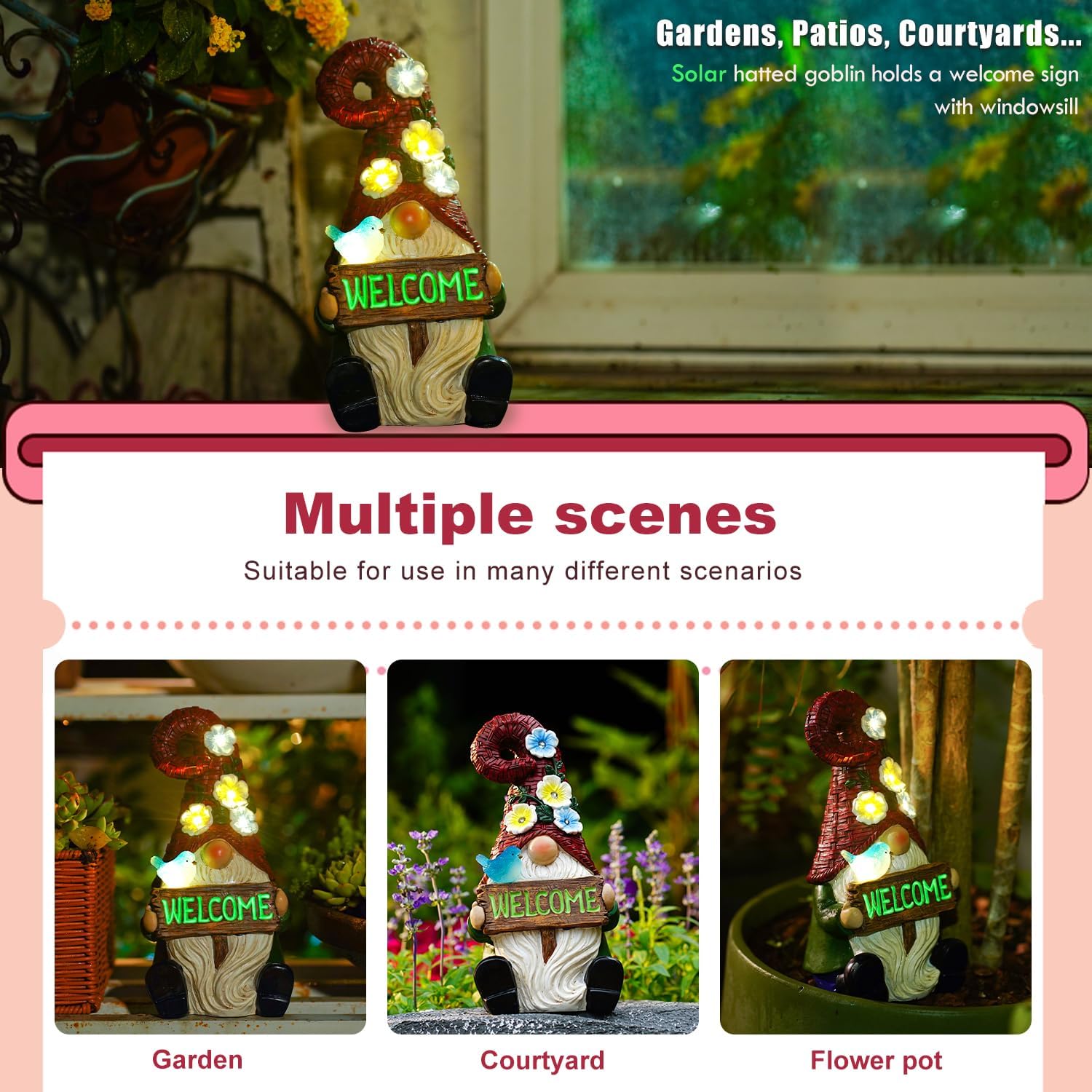Solar Gnome with Wlecome Decor for Yard Decorations - 10 Inch Gnome Statue Decor for Outdoor,Perfect Garden Gifts for Women,Mom