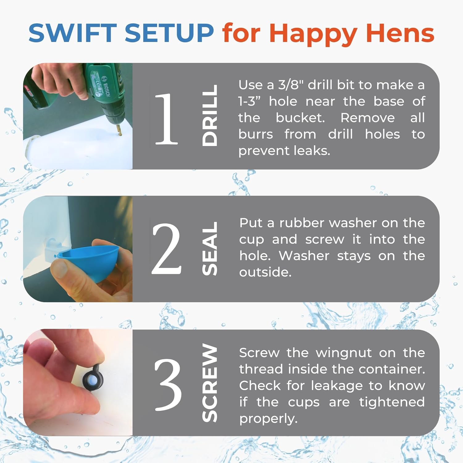 - Simple, No-Fuss Installation β Set up your automatic chicken waterer in minutes! Just drill 3/8" holes in your container or 5-gallon bucket, and you're done. Perfect for first-time poultry keepers or experienced farmers needing a reliable chicken water feeder solution.