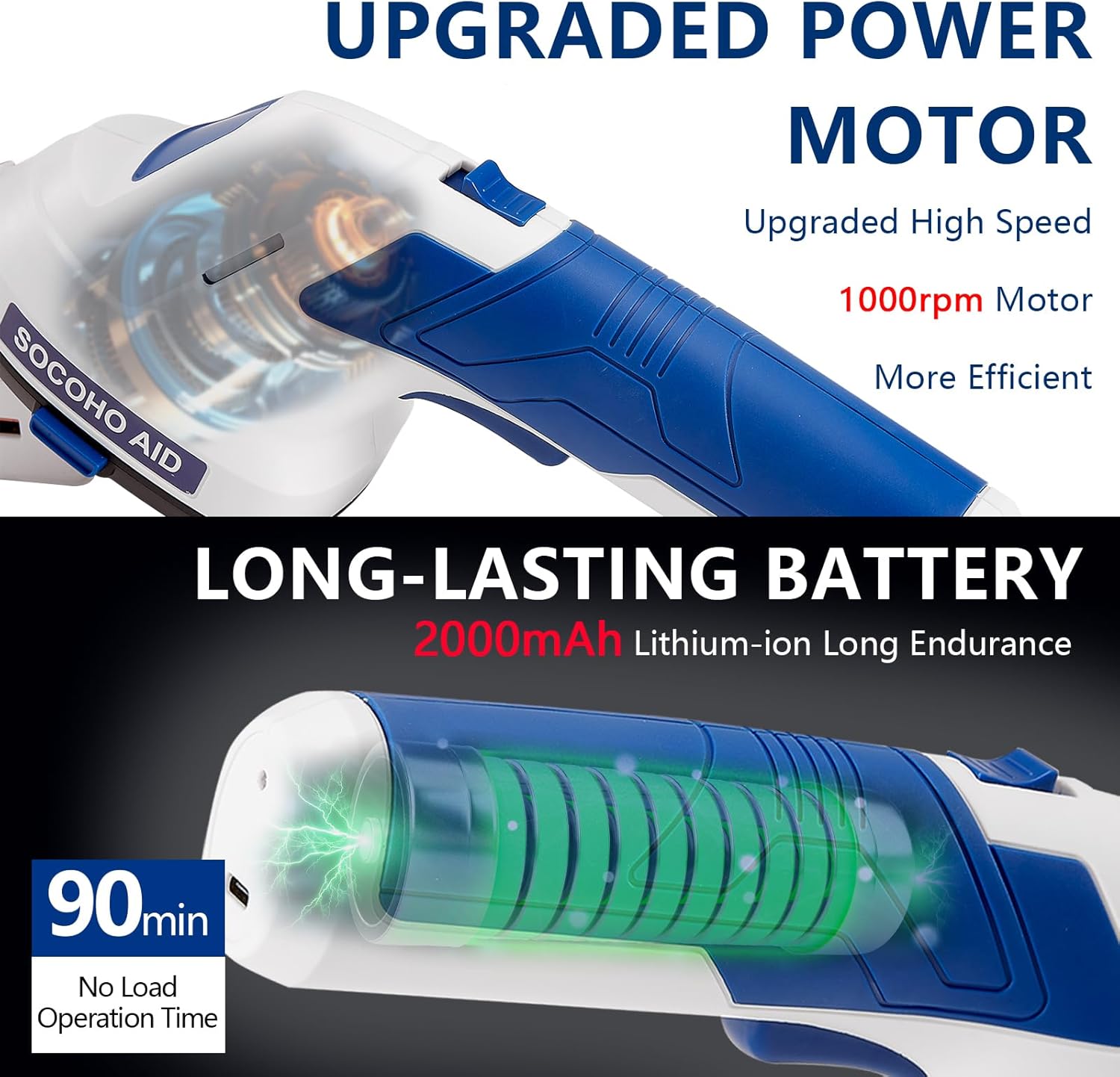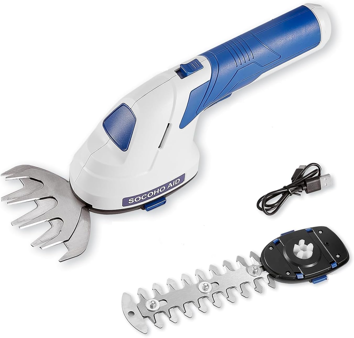 - Upgraded Power Motor: SOCOHO AID cordless bush trimmer upgraded with powerful motor the 2 in 1 design allows for quick and easy switching from trimming to mowing. even if you are a beginner, this handheld cordless lawn mower will meet your mowing needs