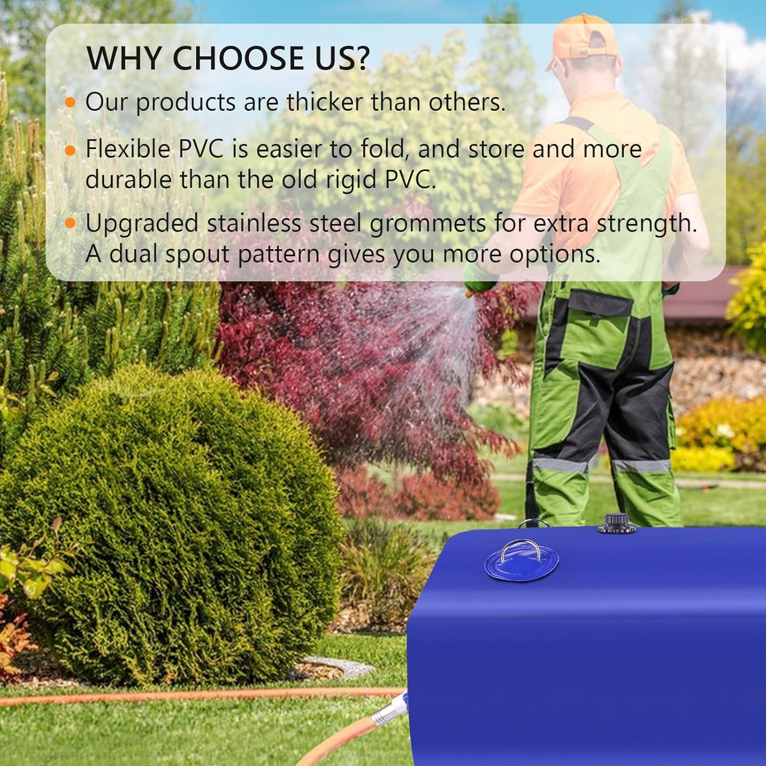 - THICK AND STRONG 1000d PVC MATERIAL: Our collapsible water containers are constructed with 1/20-inch-thick, high-density coated PVC mesh on both sides, with reinforced seams and high-frequency welded and embossed bonding to increase the strength and longevity of the bladder.