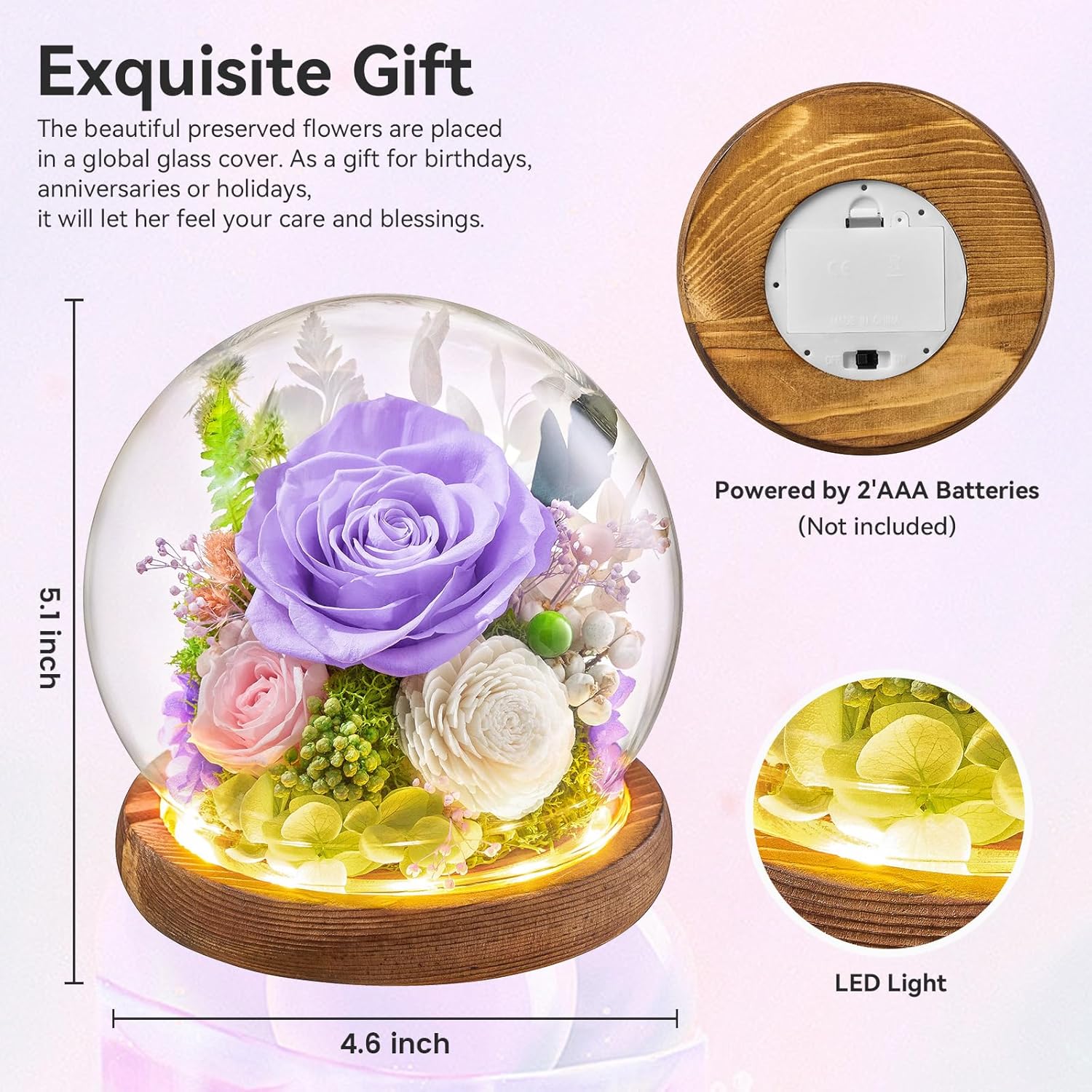 - Elegant Decoration As Mothers Day Gifts:Flomoon flowers are ideal for enhancing the ambiance of living rooms, bedrooms or offices. High-transparency glass ball radiates crystal-clear elegance, offering an unobstructed view of the exquisite real flowers rose within.