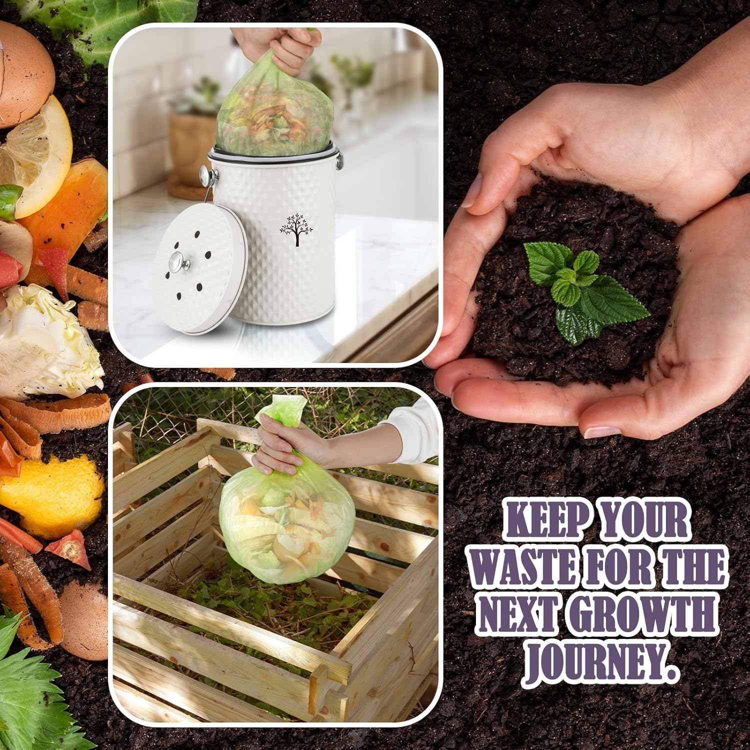 - 【COMPOST BIN LARGE CAPACITY】:1.0 gallons offers ample space for collecting your organic kitchen and food waste for a week.Such as discarded fruit vegetable scraps, shell bones, leftovers, tea bags, and save your trips to your outdoor compost piles or bins.