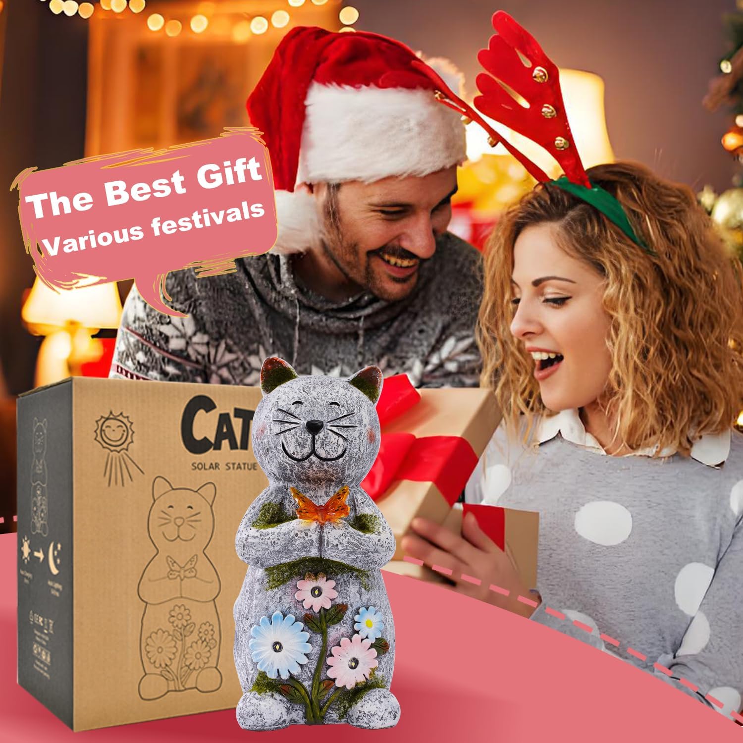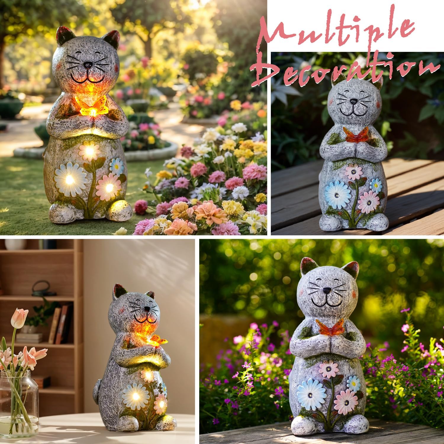 Solar Garden Statue Cat Figurine – Outdoor Decoration with Butterfly for Garden Yard Lawn Home Decor Outside : Unique Gifts for Mom Grandma