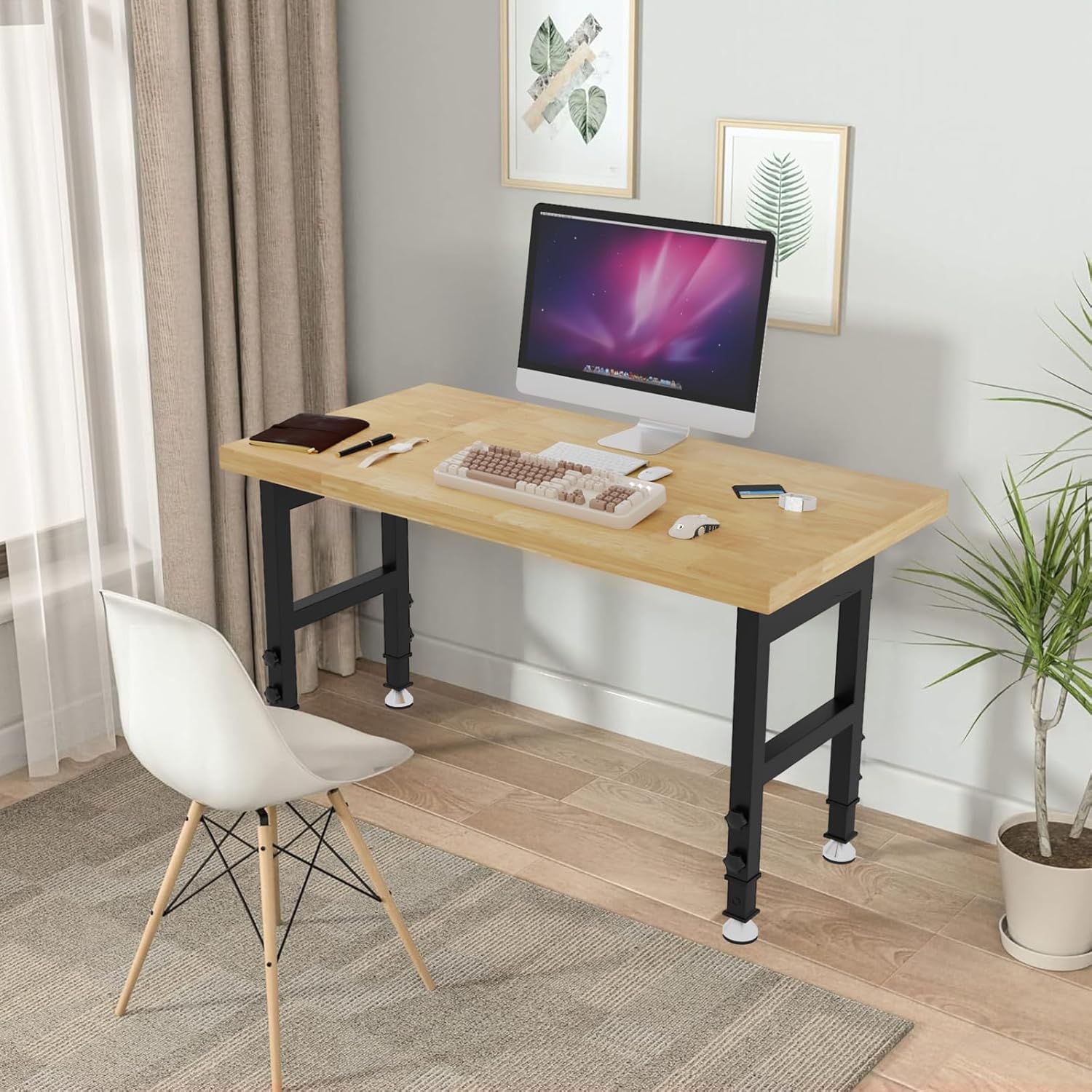 48'' Adjustable Workbench, Solid Wood Work Bench Table, Metal Tool Bench Work Bench for Garage, Large Load Capacity Garage Workbench Workshop Table for Workshop,Office,Home, Easy Assembly