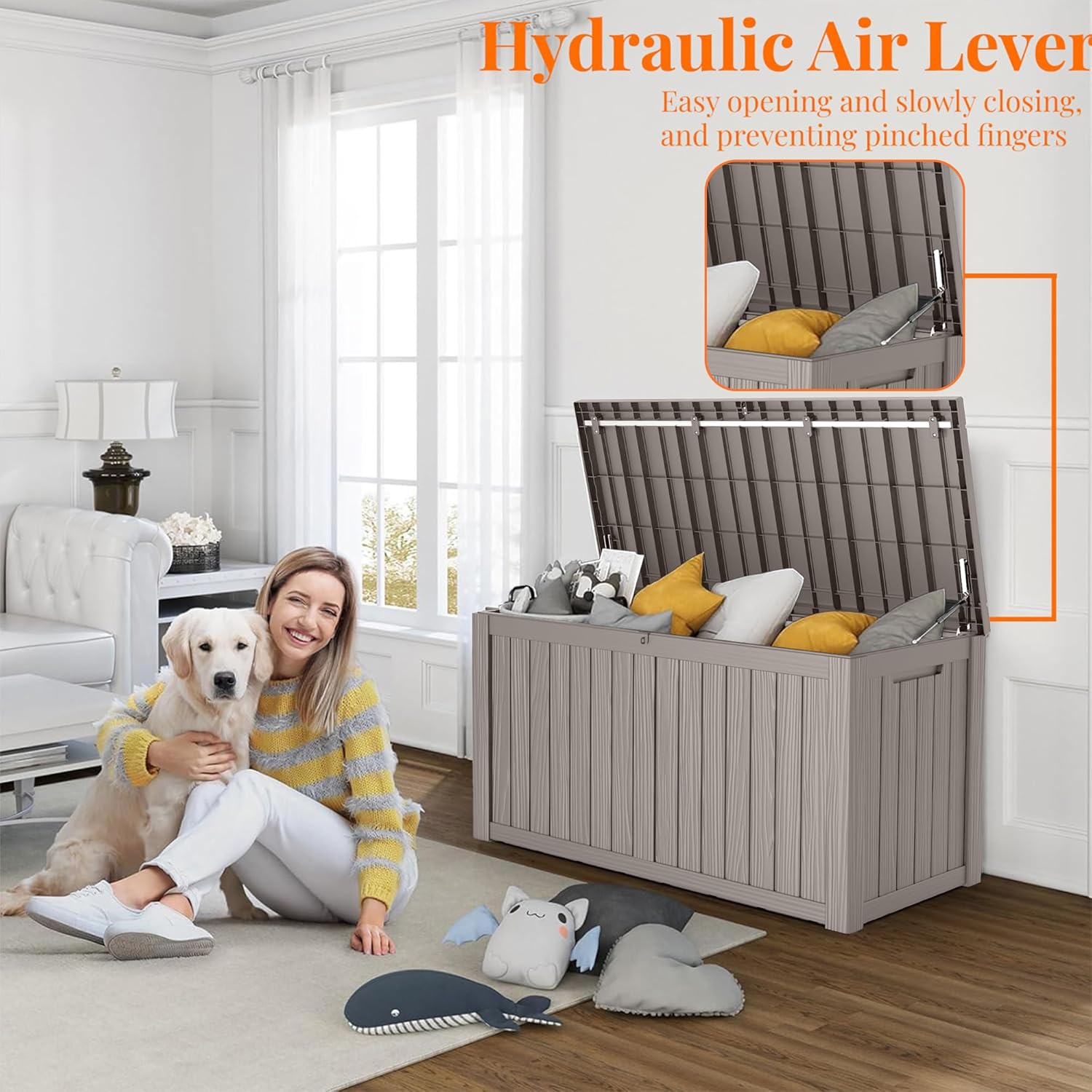 - VERSATILE IN EVERY SETTING: This patio storage box doubles as an indoor laundry organizer and an outdoor yard storage unit for cushions, garden tools, pool accessories, outdoor gear, and more, offering ample space. It can also serve as a side table, patio seat, storage bench, or footstool