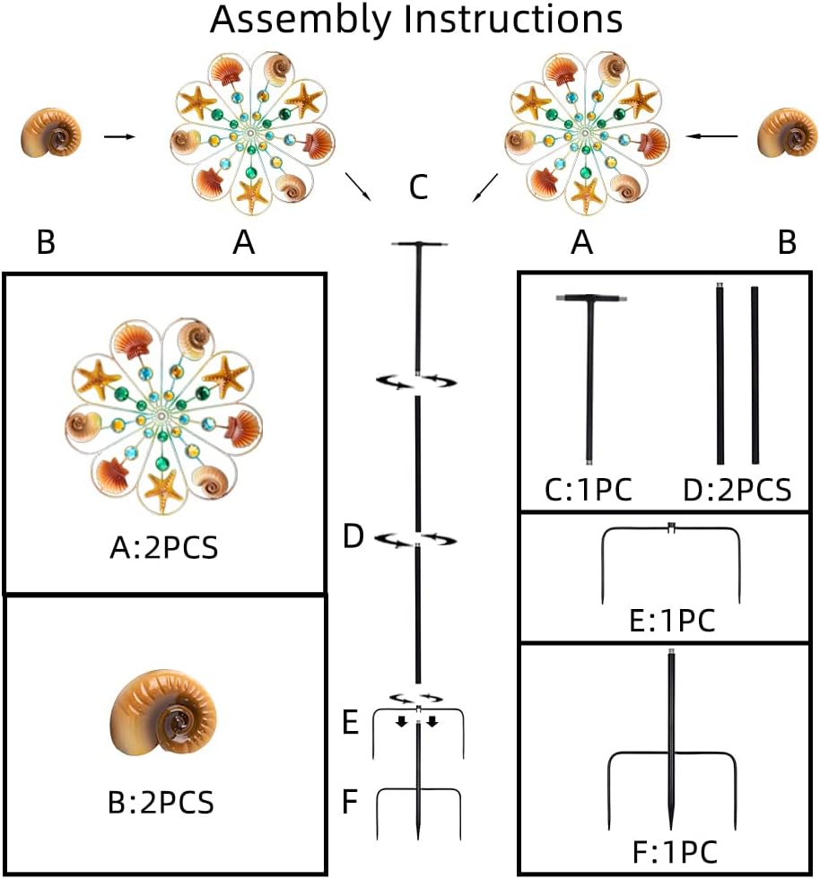 - Ocean Wind Spinner:This windmill adds Marine elements to the design, and the exquisite and realistic conch, starfish and shell are ornamental. As it rotates, it creates a beautiful visual experience in the garden.
