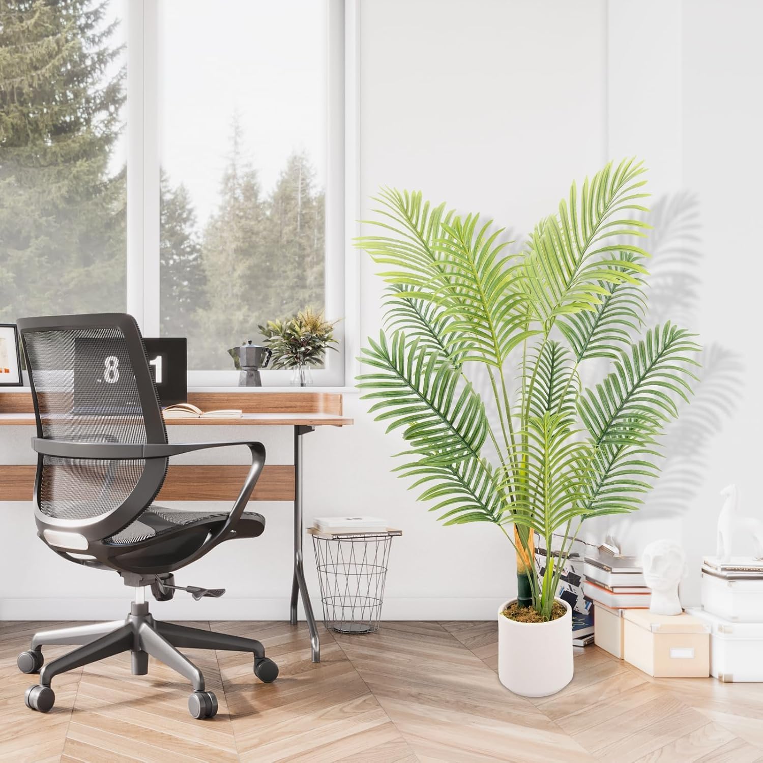 - 🌴 Luxury Artificial Palm Tree with Planter & Free Moss – Elevate your home decor instantly! MCTYBB’s artificial palm tree arrives pre-potted in a sleek white planter, comes with free faux moss—no extra purchases needed. Perfect for patio decor, poolside lounging, or adding tropical vibes to room decor in living rooms, offices, or bedrooms.