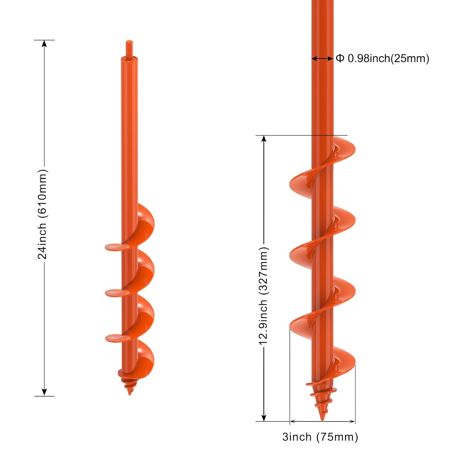 - πΊπππ&ππππππ ππ πΌππ: Each drill augers for digging holes has no sharp edges, the spiral thick 3mm, the 3'' wider spiral makes it super easy to make holes of the perfect size quickly, it make less dirt the post hole diggers have to scoop out and remove, making the job easier.