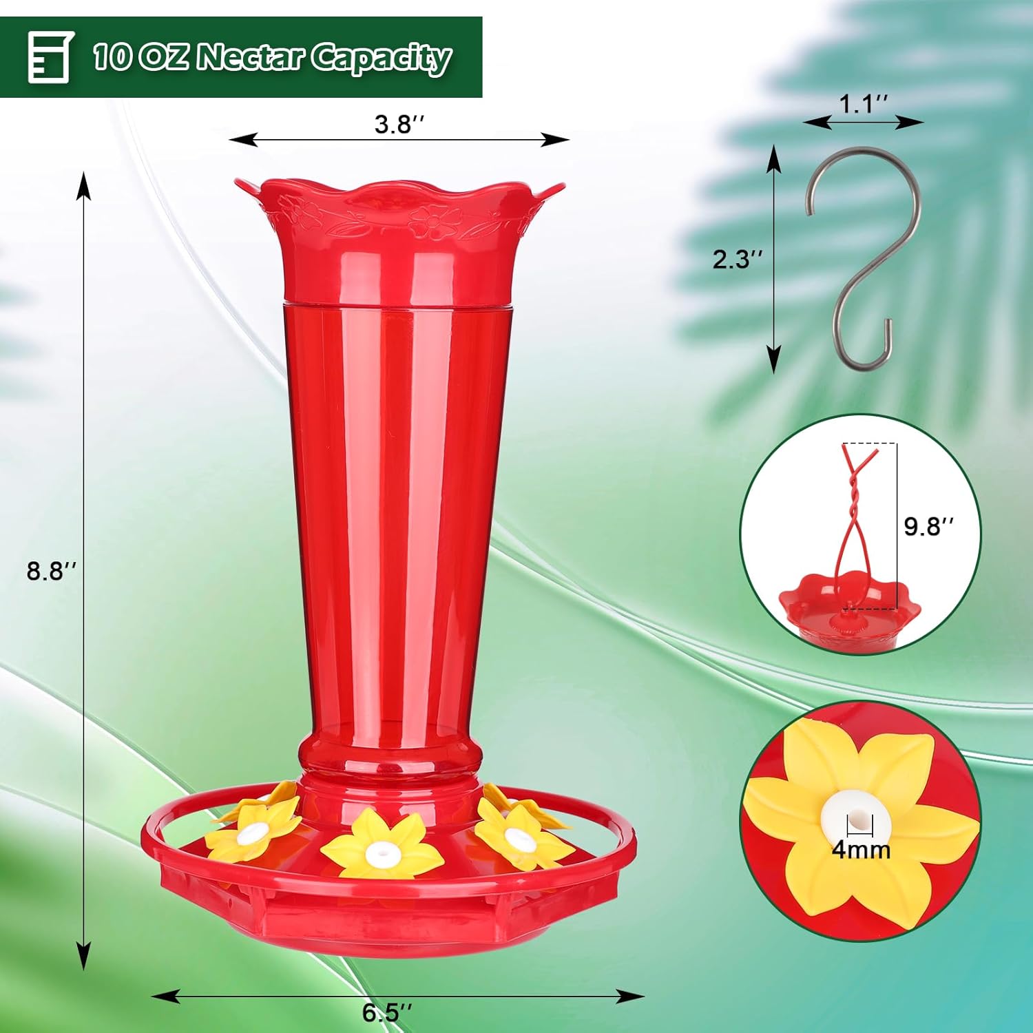 - Leak-Proof Construction: With a leak-proof gasket, this feeder prevents spills and waste, holding up to 10 ounces of nectar securely