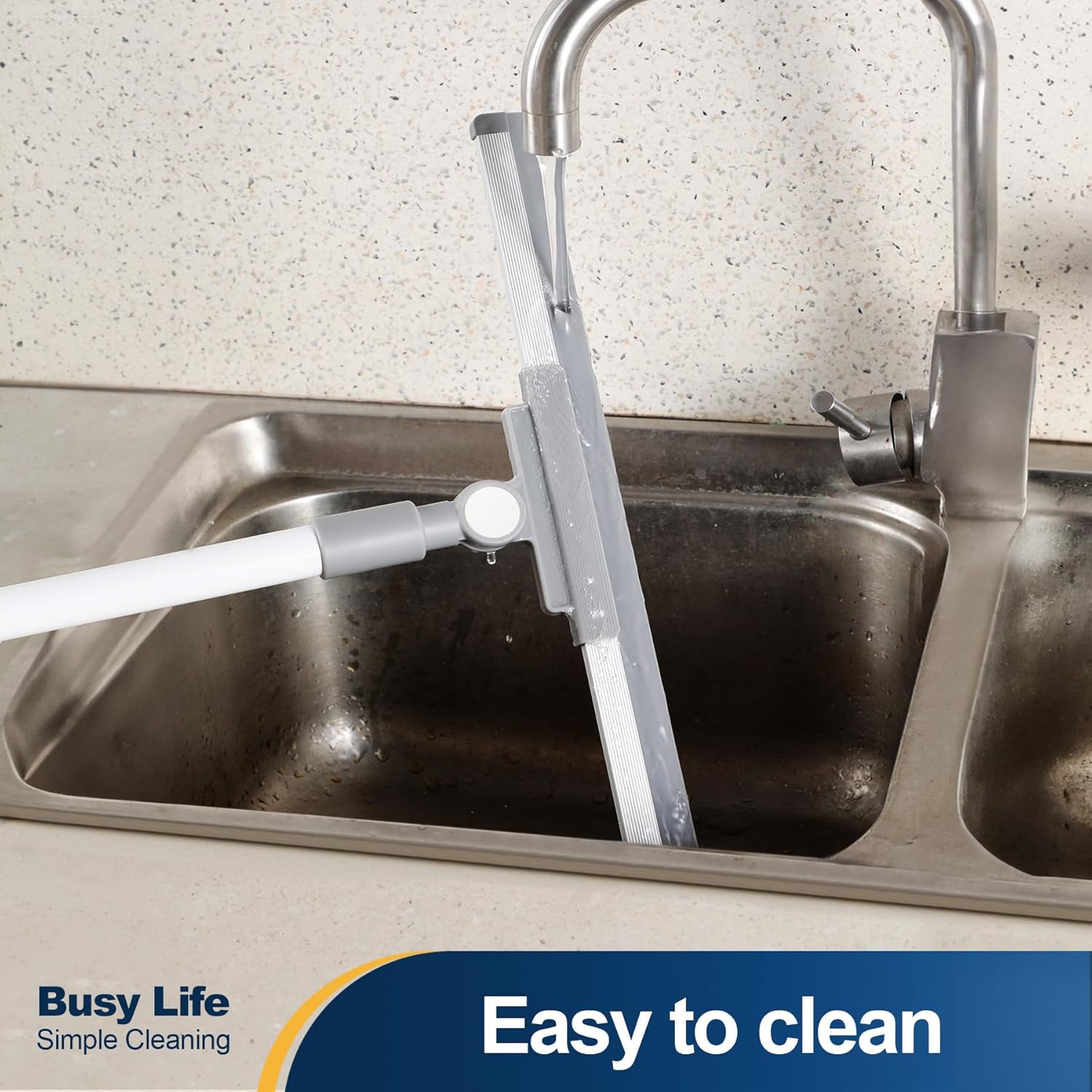 Yocada Rubber Floor Squeegee Broom TPR Blade Adjustable Scrubber Squeegee Household Broom for Shower Bathroom Kitchen Home Tile Pet Hair Fur Floor Marble Glass Window Water Foam Cleaning 53.15"