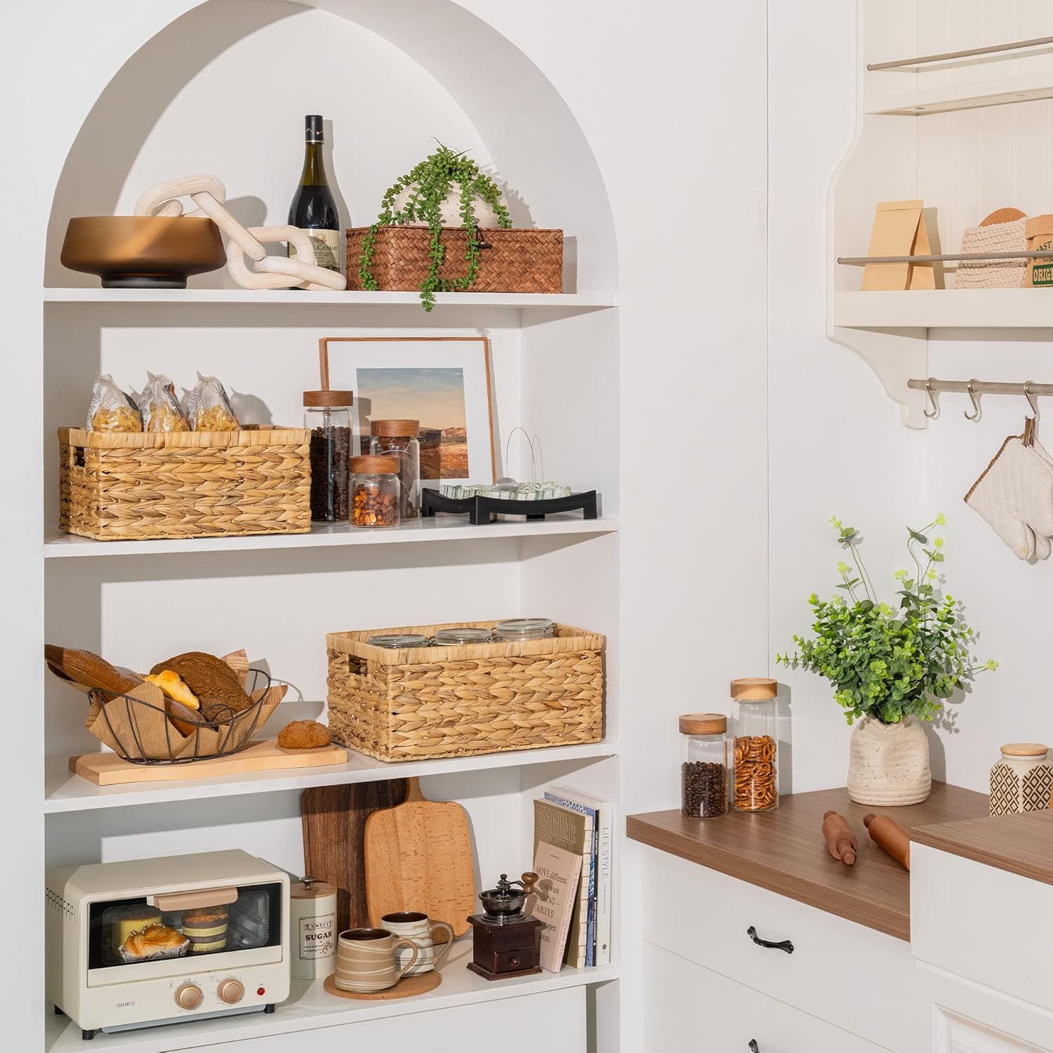 - Handwoven Craftsmanship: Handwoven by skilled artisans with tight, even braiding, each pantry basket offers a neat, elegant look that showcases its high-quality craftsmanship.
