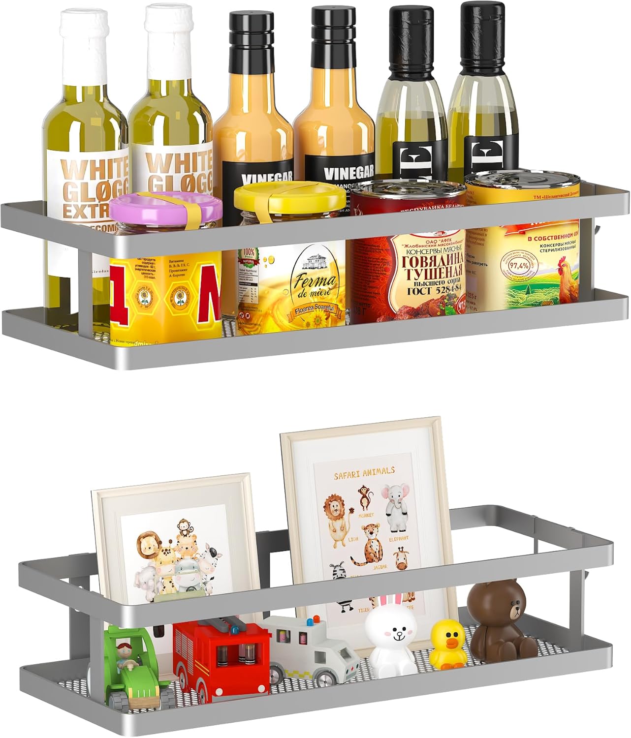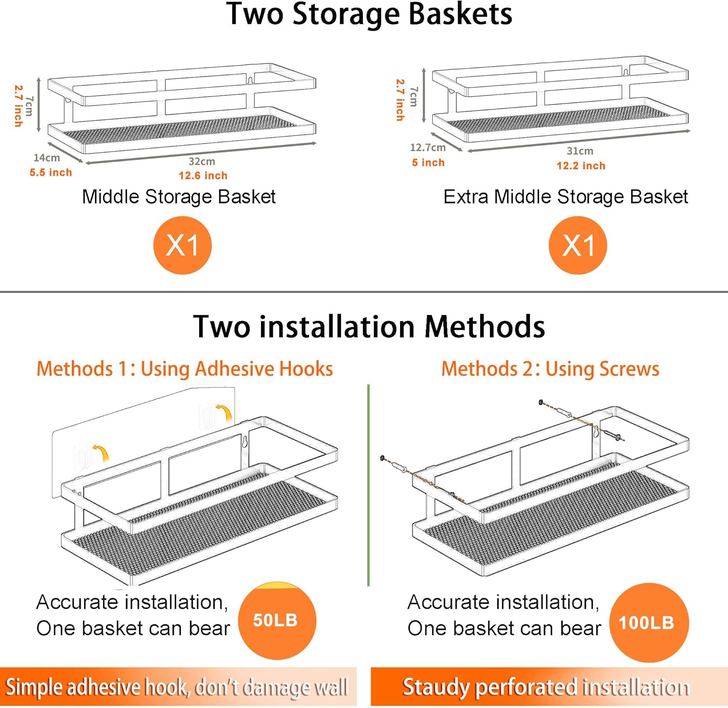 PUSDON Metal Wall Hanging Basket 2 Packs DIY Suitable for Multiple Scenes - Middle Silver Grey Guardrail
