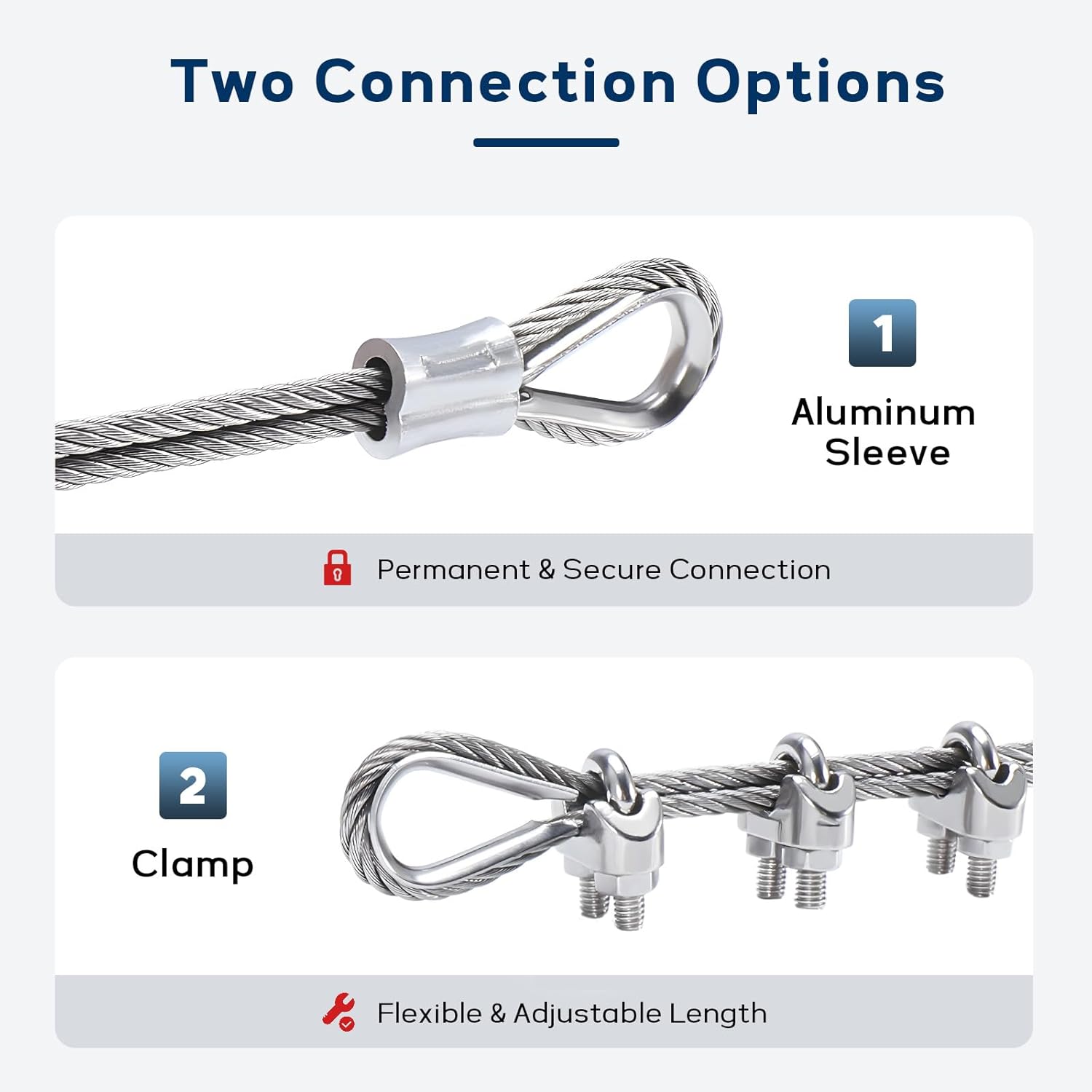 1/8 Inch Stainless Steel Cable 164FT, 7x19 Strand Wire Rope Kit with Thimbles, Clips & Aluminium Sleeves for Plants Climbing, Deck Fence Railing, String Light Haning and DIY Projects