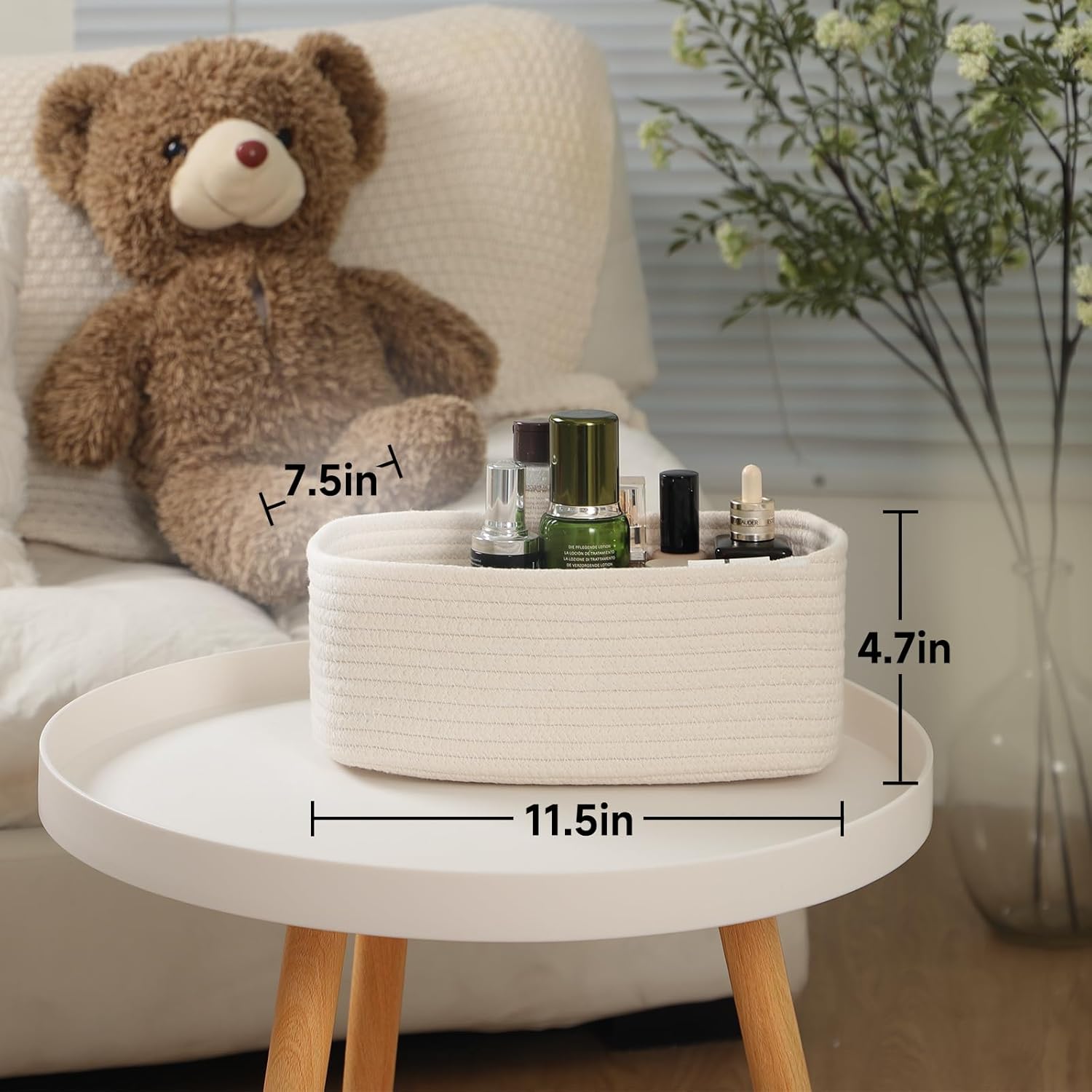 - [ Compact Size ]: With dimensions of 11.5 x 7.5 x 4.7 inches, this rectangular basket is designed to accommodate most small household items. Each set of 4 pieces can be sorted to store cosmetics, jewelry, baby diapers, towels, remote controls, keys, credit cards, wallets, charging cables, toys, snacks, paper towels, and more