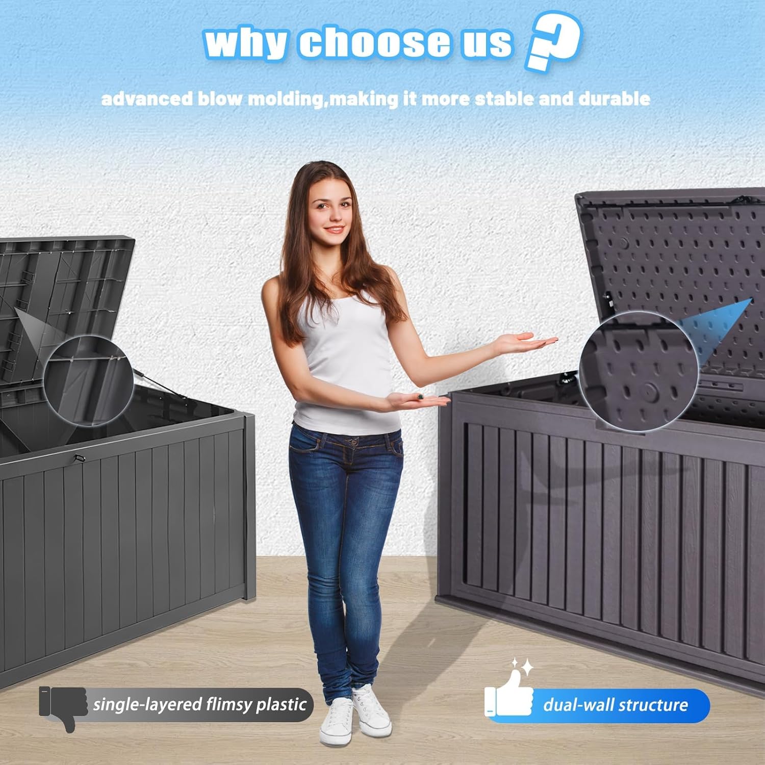 - Durable Dual-Wall Construction: Crafted with a dual-wall design, this outdoor deck box ensures superior strength and long-lasting performance. Itโs built to withstand all weather conditions, keeping your items safe and protected.