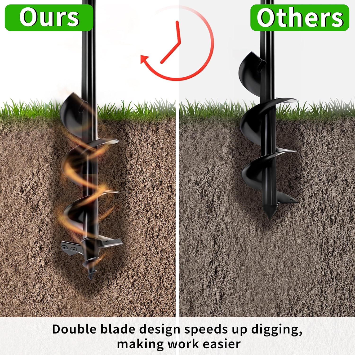 - Sharp Upgraded Blades for Effortless Digging – Featuring a reinforced steel design and upgraded cutting-edge blade tip, this auger drill bit tears through tough soil, clay, and even rocky ground with ease. The auger specially designed for hard and rocky soild which others can't do it. Your new favorite tulip planter tool just made digging simpler than ever.