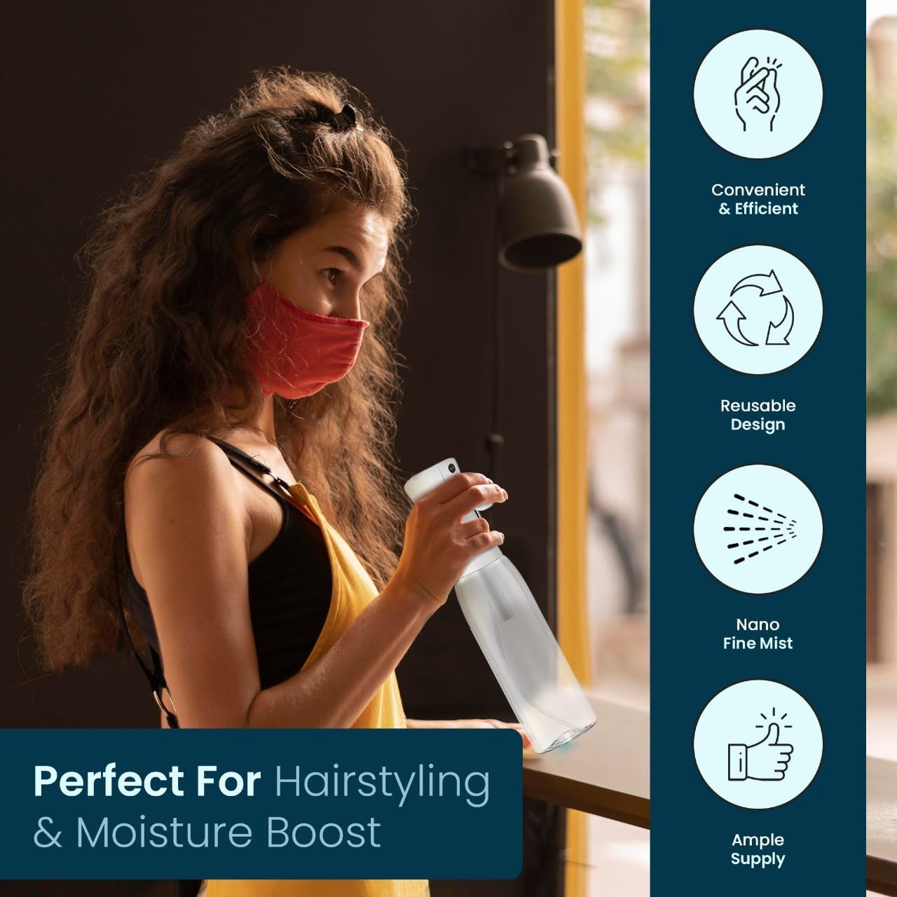 - Ergonomic and Quiet: Designed for comfort with a secure grip, this leak-proof and super quiet continuous spray bottle is convenient for use anywhere.
