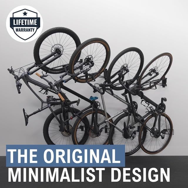- 4-Pack Bike Rack Wall Mount: Organize your mountain bikes flat against the wall with this 4 pack vertical bike rack. It holds all bikes with tires between 2.0 mm and 2.8'' wide. From your lightest carbon frame to your heaviest e-bike, keep your bike adventure-ready.