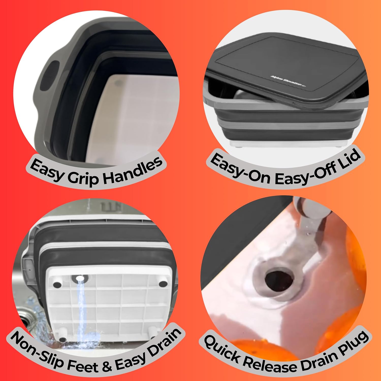 - Quick-Drain Plug – Built-in drainage hole lets you rinse, soak, or defrost with no mess. Converts the tub into a portable sink or strainer.