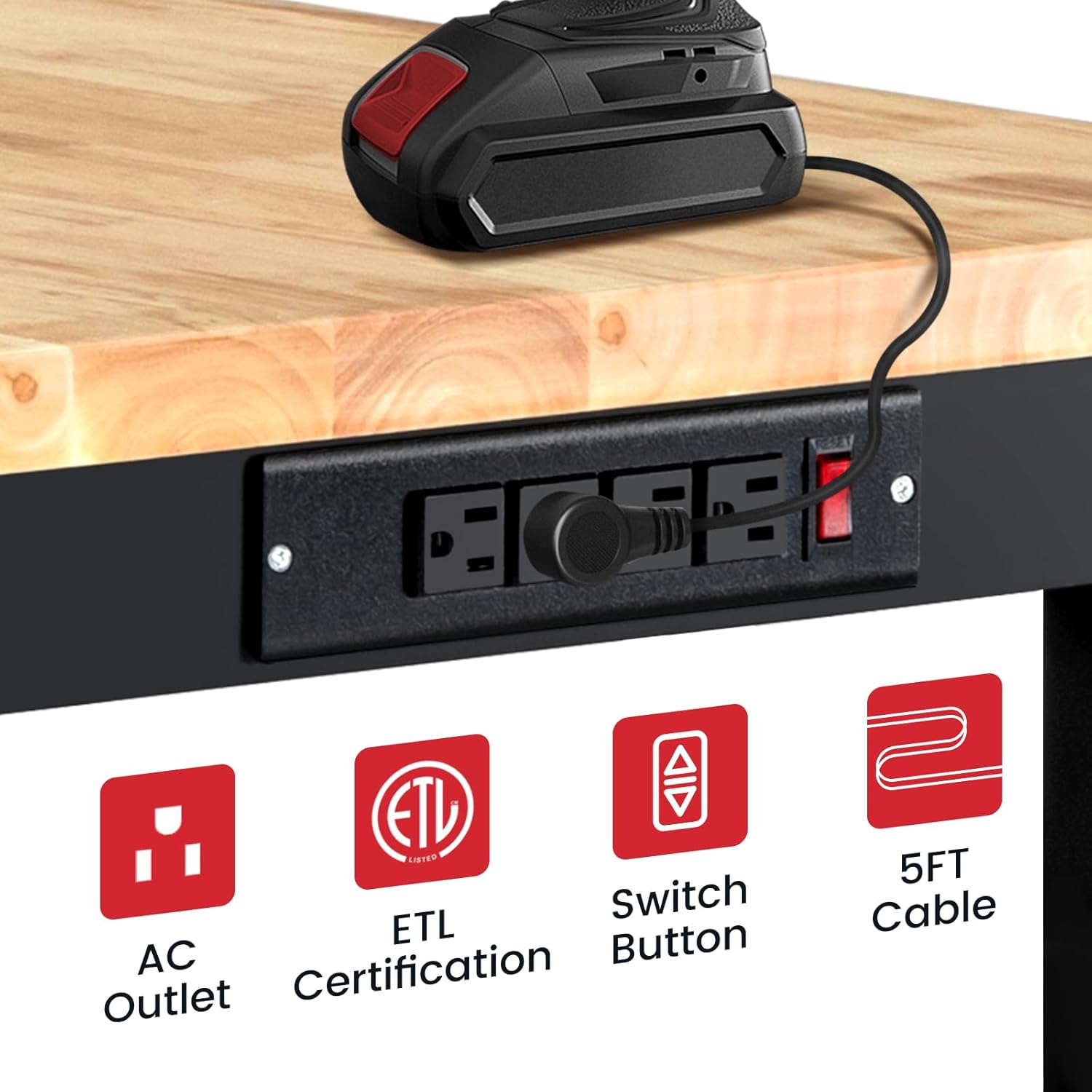 - ETL-certified power outlets with quick-access switches provide instant power for tools. Built-in cord organizer keeps cables tidy for safer operation.