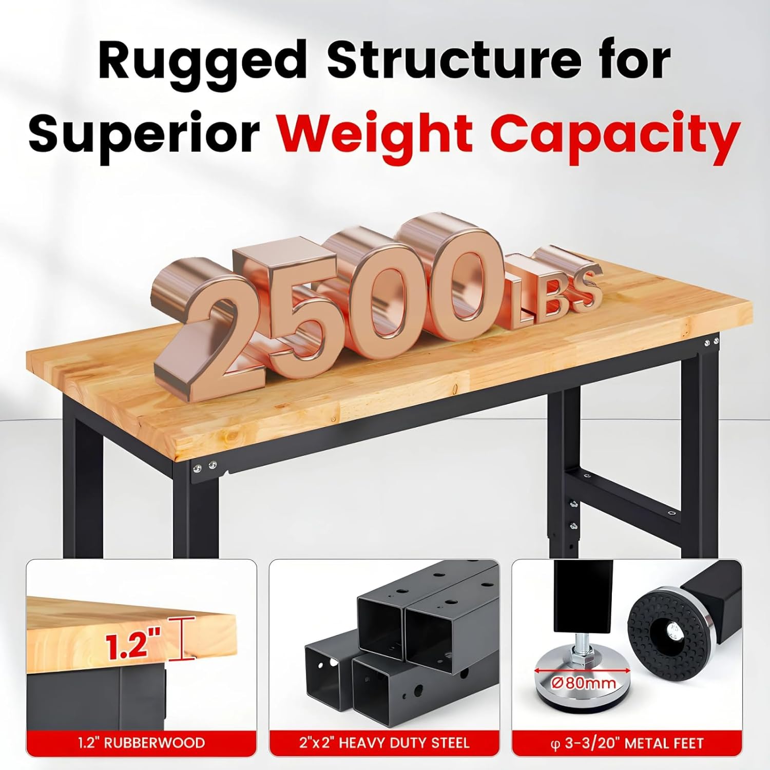 - 1.2 inch thick premium rubberwood tabletop delivers superior stability for workshop tasks, ensuring safety during sanding and sawing. Protective transparent coating enhances durability.
