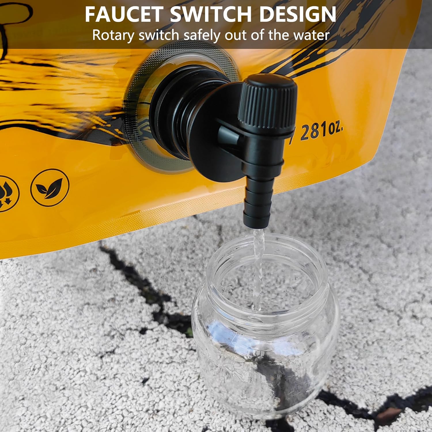 - 【Leakproof Spigot】Military-grade spigot with 360° leakproof seals for controlled dispensing. The 1.34-inch wide opening allows quick refilling, Good spigot water-flow, Easy on/off spigot with controllable flow, while the screw cap prevents spills during camp showers or as a portable water reservoir