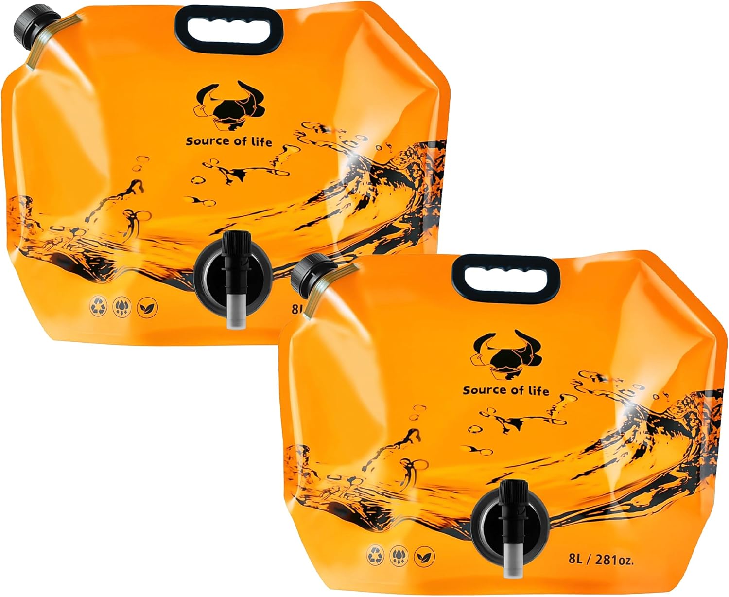 Collapsible 8L Water Storage Bag, BPA-Free Portable Folding Water Jug with Adjustable Faucet, Leakproof Emergency Water Bag for Camping, Hiking, Riding, Outdoor Sport (Orange, 2)