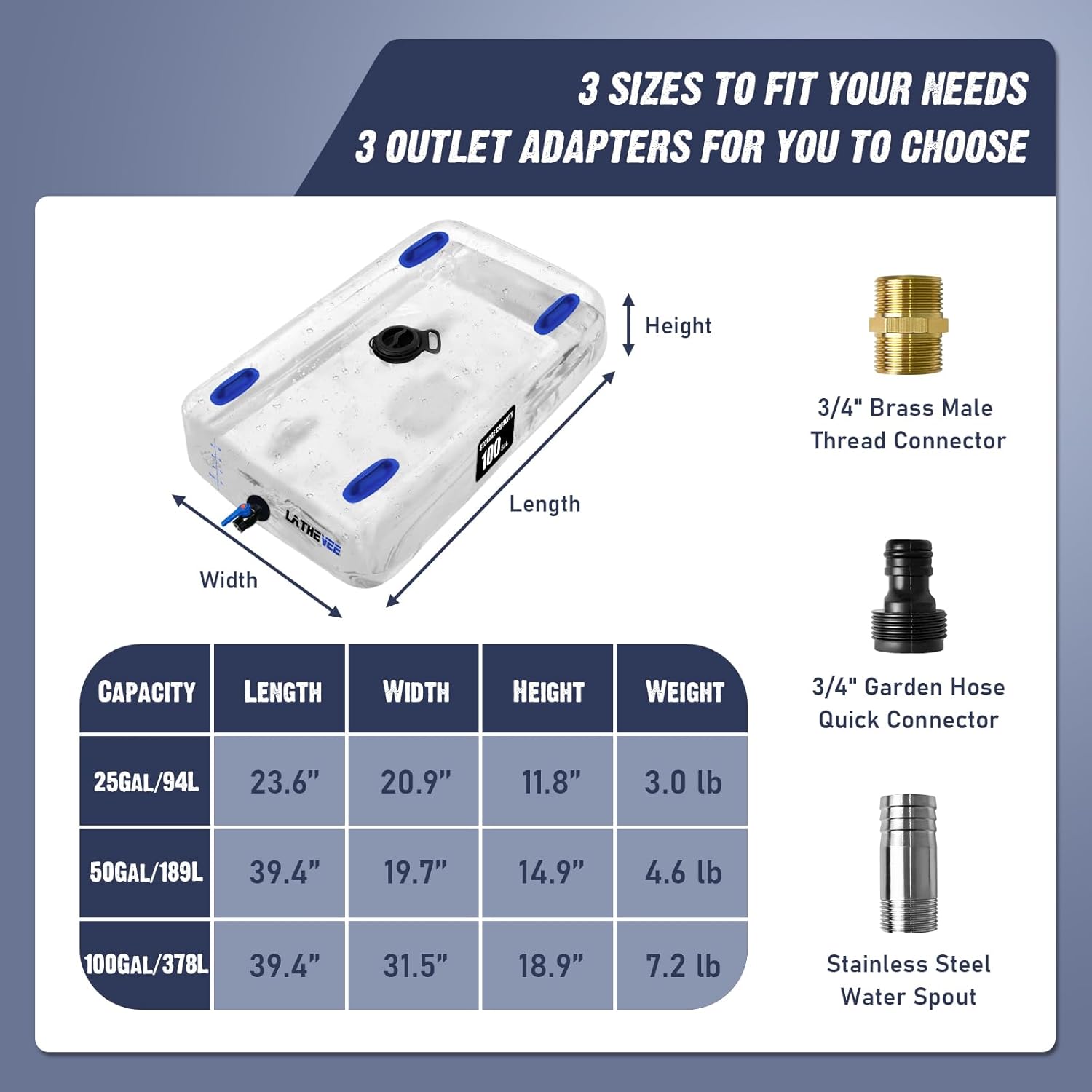 - LARGE WATER TANK: The LATHEVEE water storage bag can hold 25 gallons/94L of water, and the transparent material allows you to observe the water storage situation more intuitively. It can help you organize gardens, water plants, irrigate agriculture, camp, hunt, hike, and provide emergency water for outdoor activities or off grid living