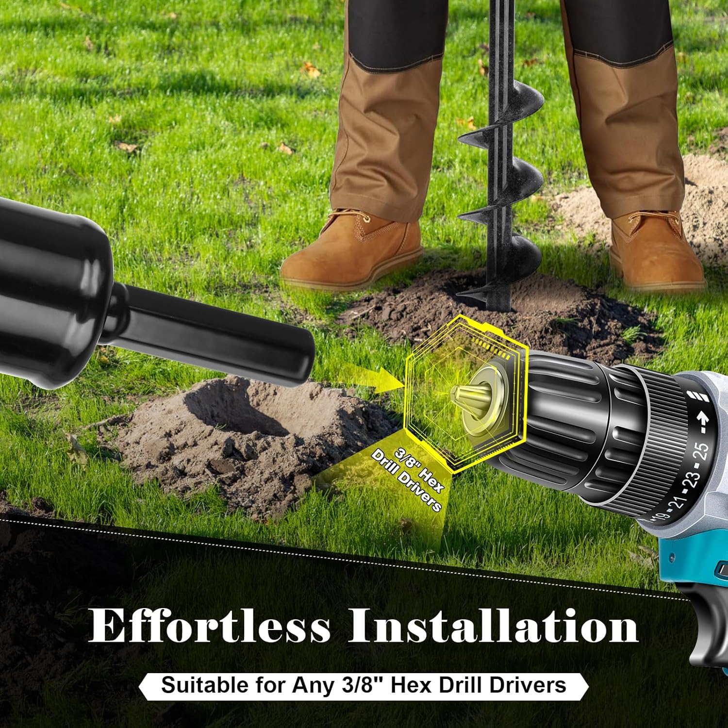 - Easy to Use:Just attach the drill auger to any standard 3/8" drill, and you're all set to start digging with ease. Add water to the soil prior to drilling for easier penetration. Enjoy happier planting and make your gardening experience more enjoyable than ever.