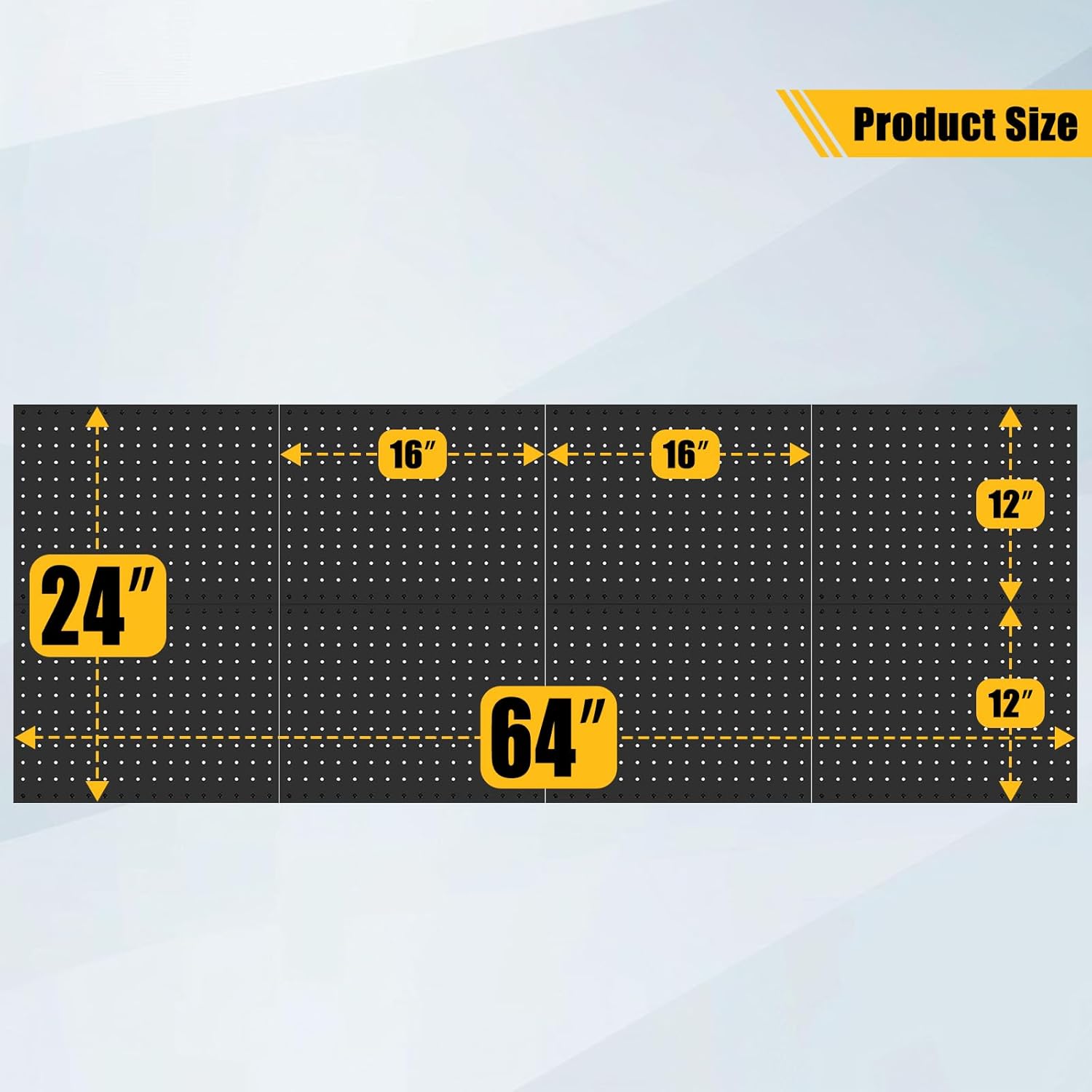 - Great for Tools Organization: This garage storage pegboard system can be DIY according to your storage needs. Each 16 x 12 inch pegboard with 1/4 inch holes, 8 pegboards can form a 48 x 32 / 64 x 24 pegboard wall. Suitable for organizing garage tools or garden tools and all kinds of tools. A nice choice for storing and holding your tools in kitchen, garage, utility room, basement or shed