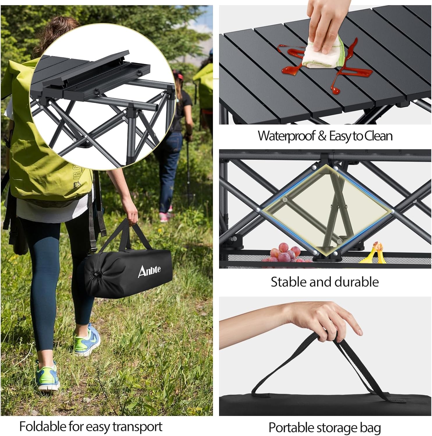 - Portable & Easy To Install and Fold Up: Weighing only 8.7 lbs and equipped with a storage bag, Anbte portable camping table is highly portable and space-saving. Ideal for storing in cars, RVs, or motorcycles