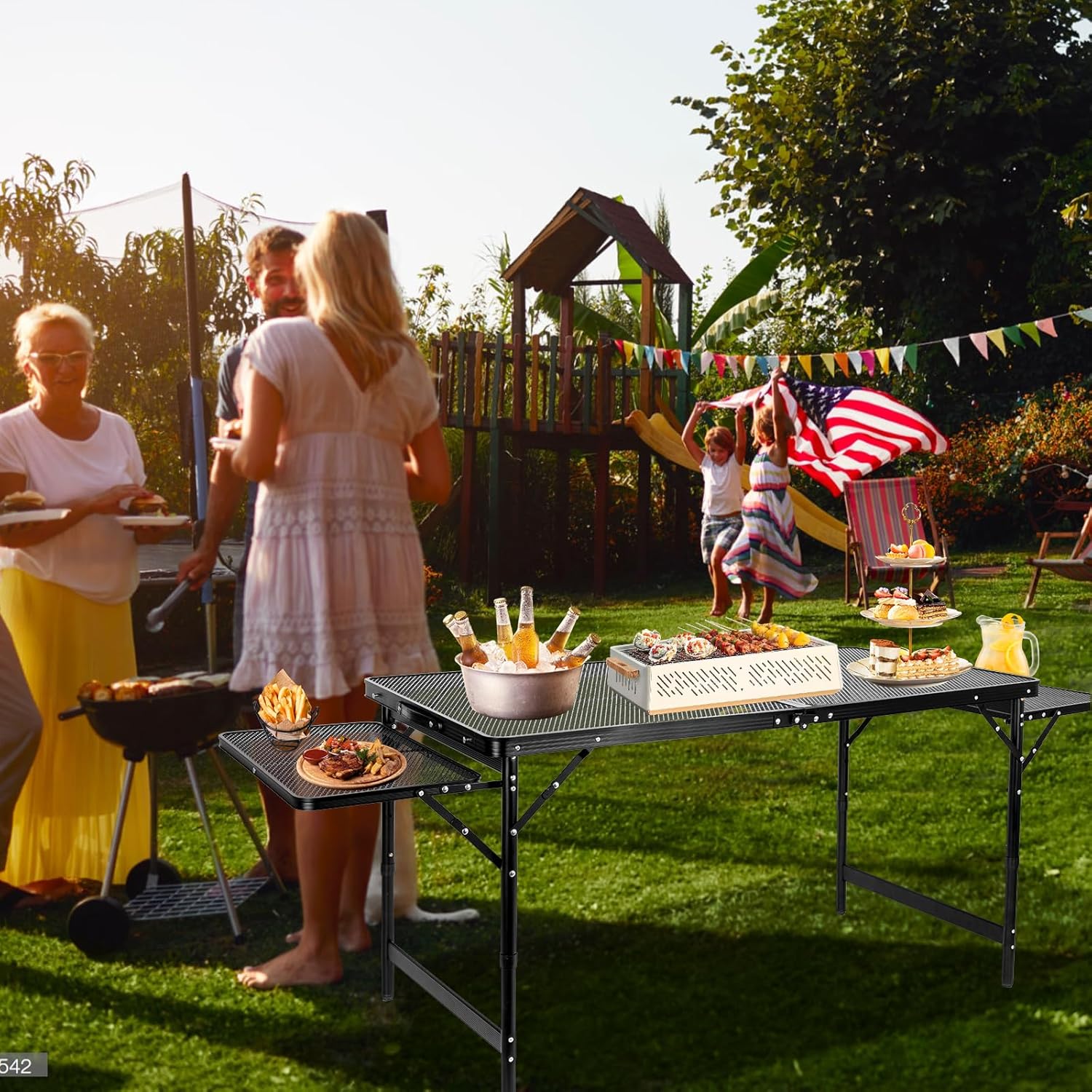 Grill Table Folding Table with 2 Wing Panels 4FT+1.77 FT with Mesh Desktop 3 Height Adjustable Portable Grill for Outdoor Indoor Beach BBQ Picnic Travel RV Black 69.3 x 23.62 inch