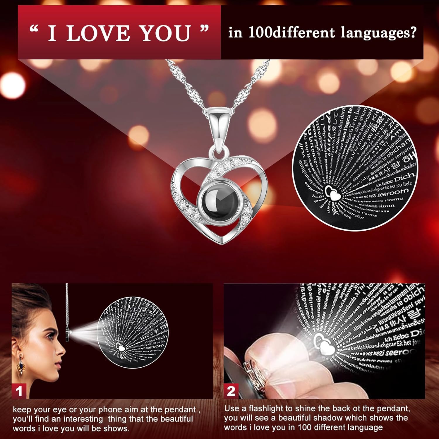 - 【Preserved Rose with Necklace】Unique double heart-shaped structure and is engraved with " I LOVE YOU necklace 100 Languages " to express love to her. The two hearts are tightly intertwined, symbolizing the love for each other and it will be an exclusive gift for her. The i love you necklace on hidden inside bottom of the rose box, as a romantic gifts for her, Unique design of double love "I LOVE YOU necklace" and gift box preserved rose, gift Ideas for women for every romantic occasion.