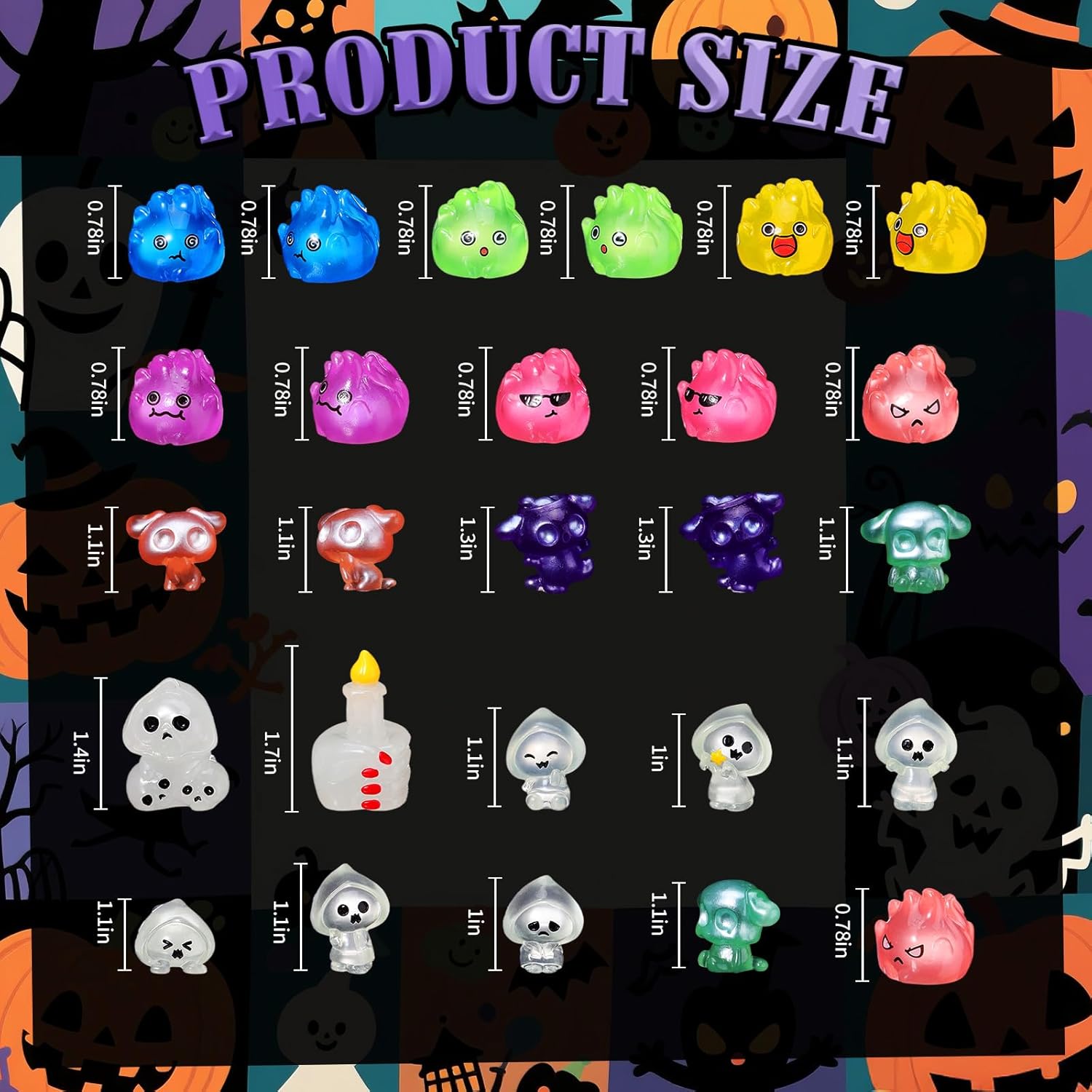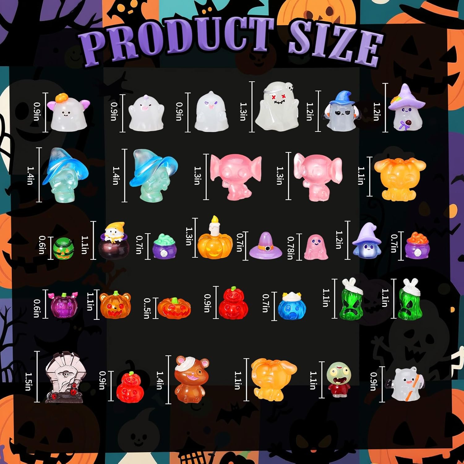 - Mini Size: adorn your Halloween setups with these miniatures, sized between 0.79-1.57 inches/ 2-4 cm, ideal for embellishing fairy houses, cakes, or any spooky corner, injecting vibrancy into your festivities