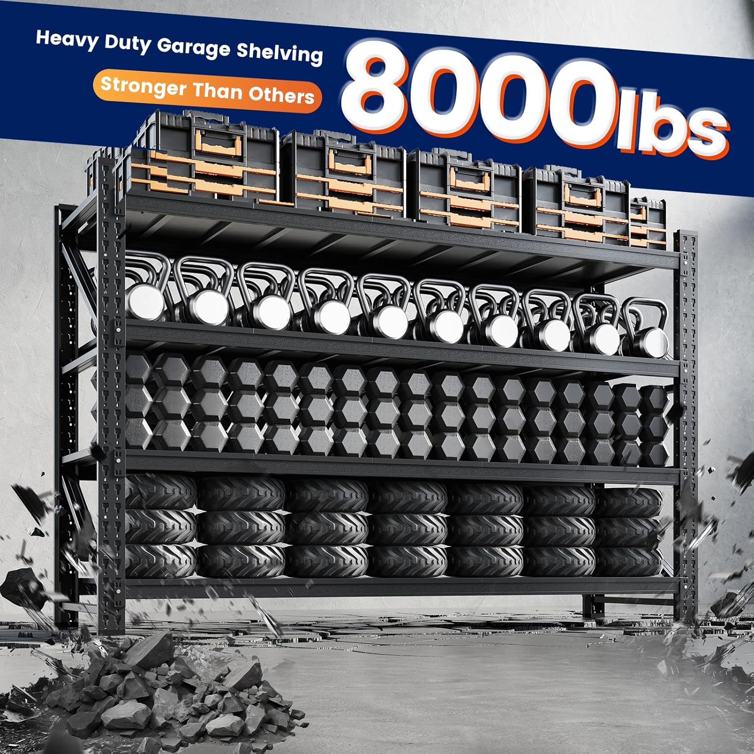 Yizosh 75" W Metal Garage Storage Shelves,8000LBS Heavy Duty 4-Shelf Adjustable Steel Organization Shelving,Utility Rack Shelf,75" W x 24" D x 70" H for Basement,Warehouse,Industrial