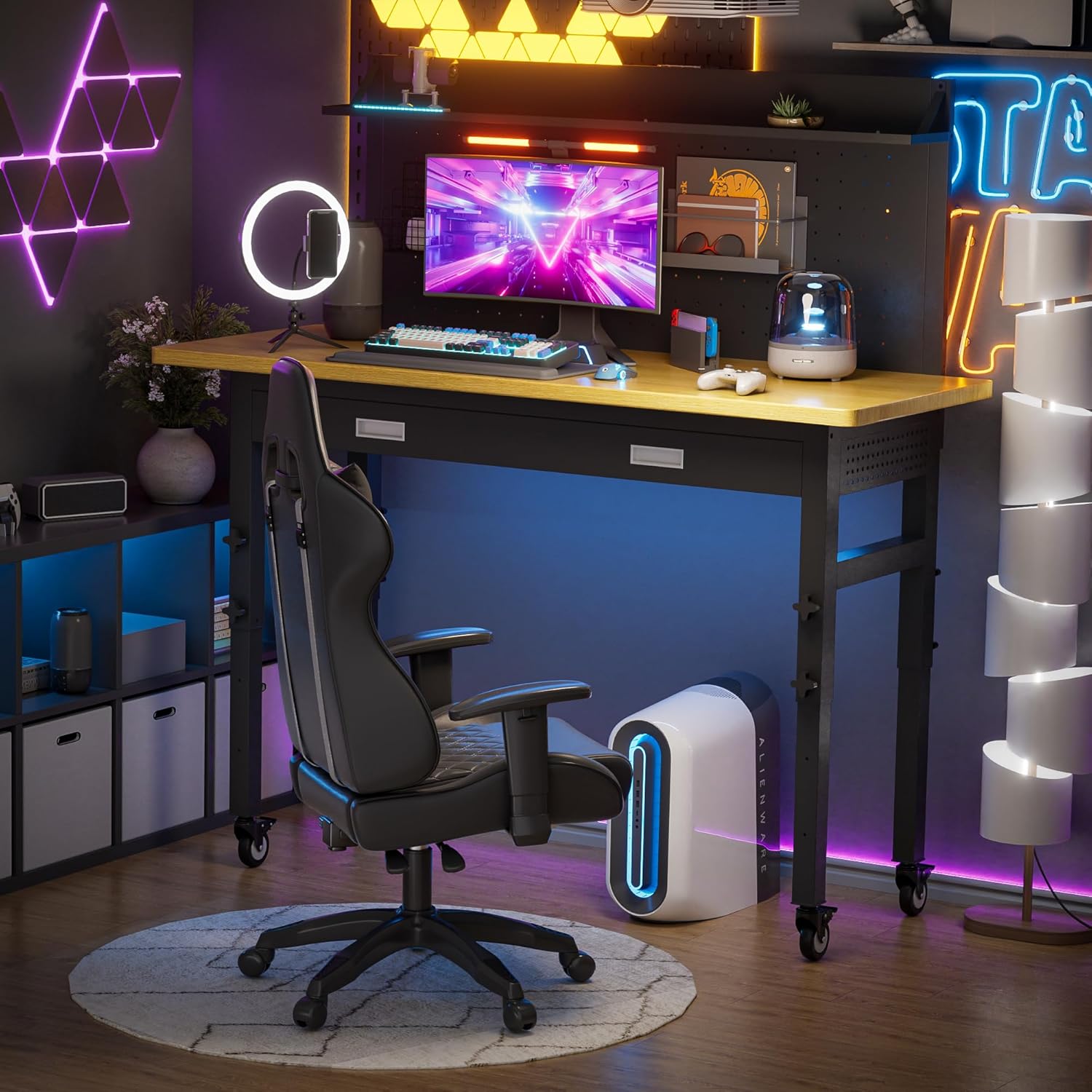- Workshop Organization System: Spacious storage drawers with 3 pegboards on the front and sides are perfect for neatly storing your tools and supplies, and an additional storage shelf on the top of the workbench helps you maintain an efficient workspace