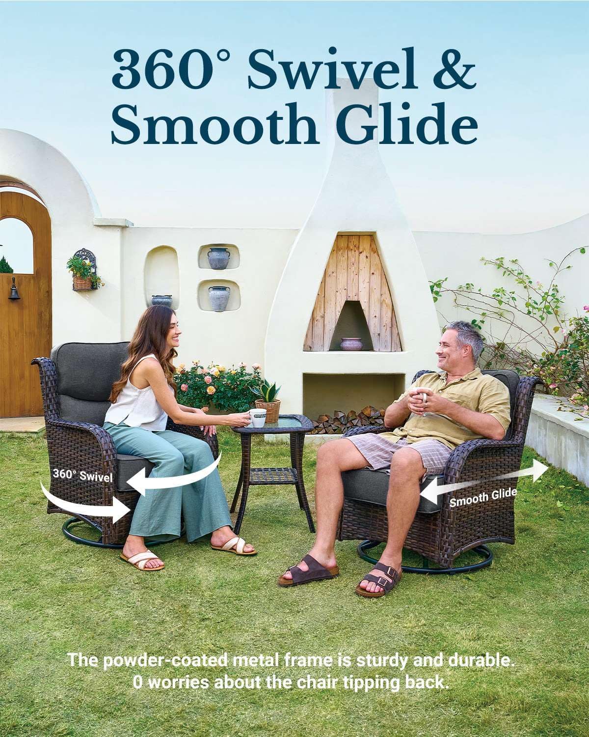 - Heavy-Duty Metal Frame: Robot-welded for rock-solid stability and 350+ lbs support, with an e-coating that resist rust, chipping, and corrosion—built to last for years outdoors