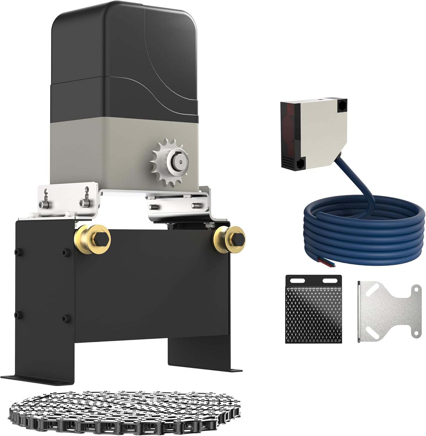 - 🛠️ DIY Installation with Basic Electrical Knowledge Recommended — Includes gate opener, sensor, chains, remotes, and all necessary mounting hardware. Installation requires some basic electrical skills for optimal performance and safety.