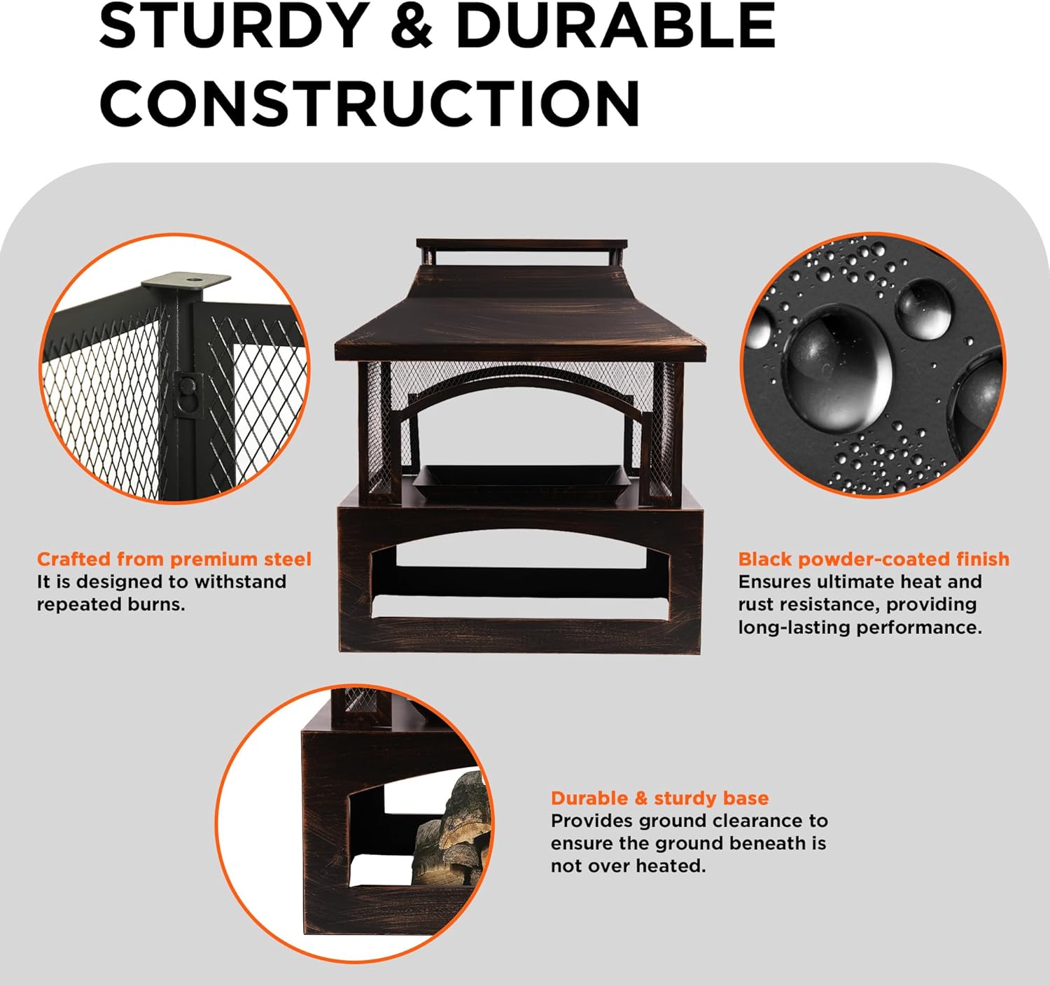 - Practical Accessories Included: Every outdoor fireplace comes with: (1) Poker for log adjustment, (2) Removable ash pan, and (3) Detachable grate. Everything you need for the perfect fire pit for outside wood burning - no extra purchases required.